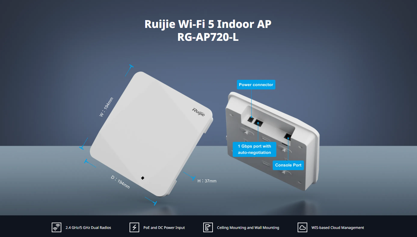 Reyee RG-AP720-L, Indoor 802.11ac Wave2 Dual-Radio Access Point