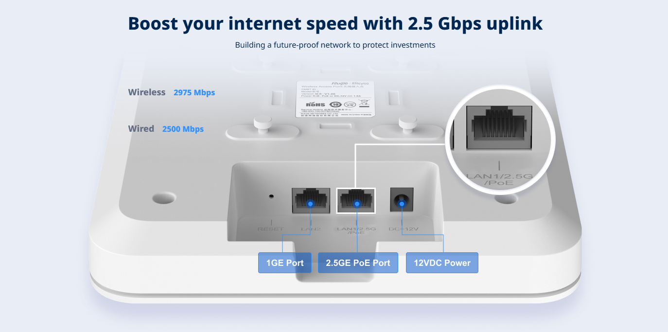 Reyee RG-RAP2260, AX3000 Wi-Fi 6 dual-band Gigabit ceiling mount Indoor Access Point