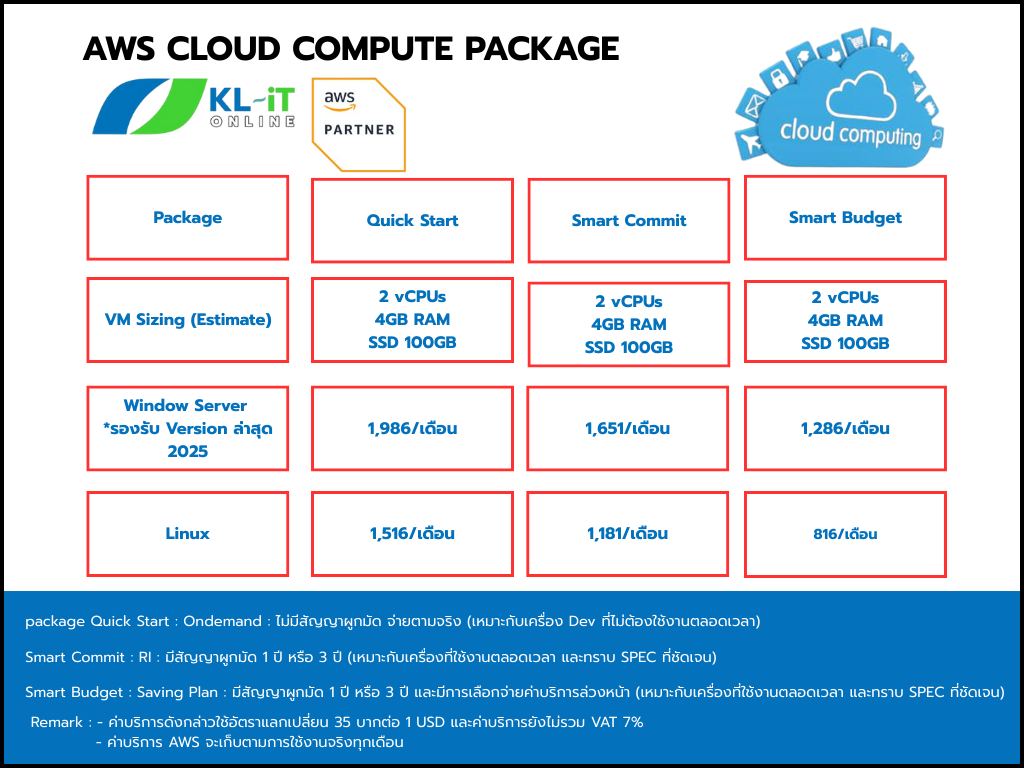 package Quick Start : Ondemand : ไม่มีสัญญาผูกมัด จ่ายตามจริง (เหมาะกับเครื่อง Dev ที่ไม่ต้องใช้งานตลอดเวลา)