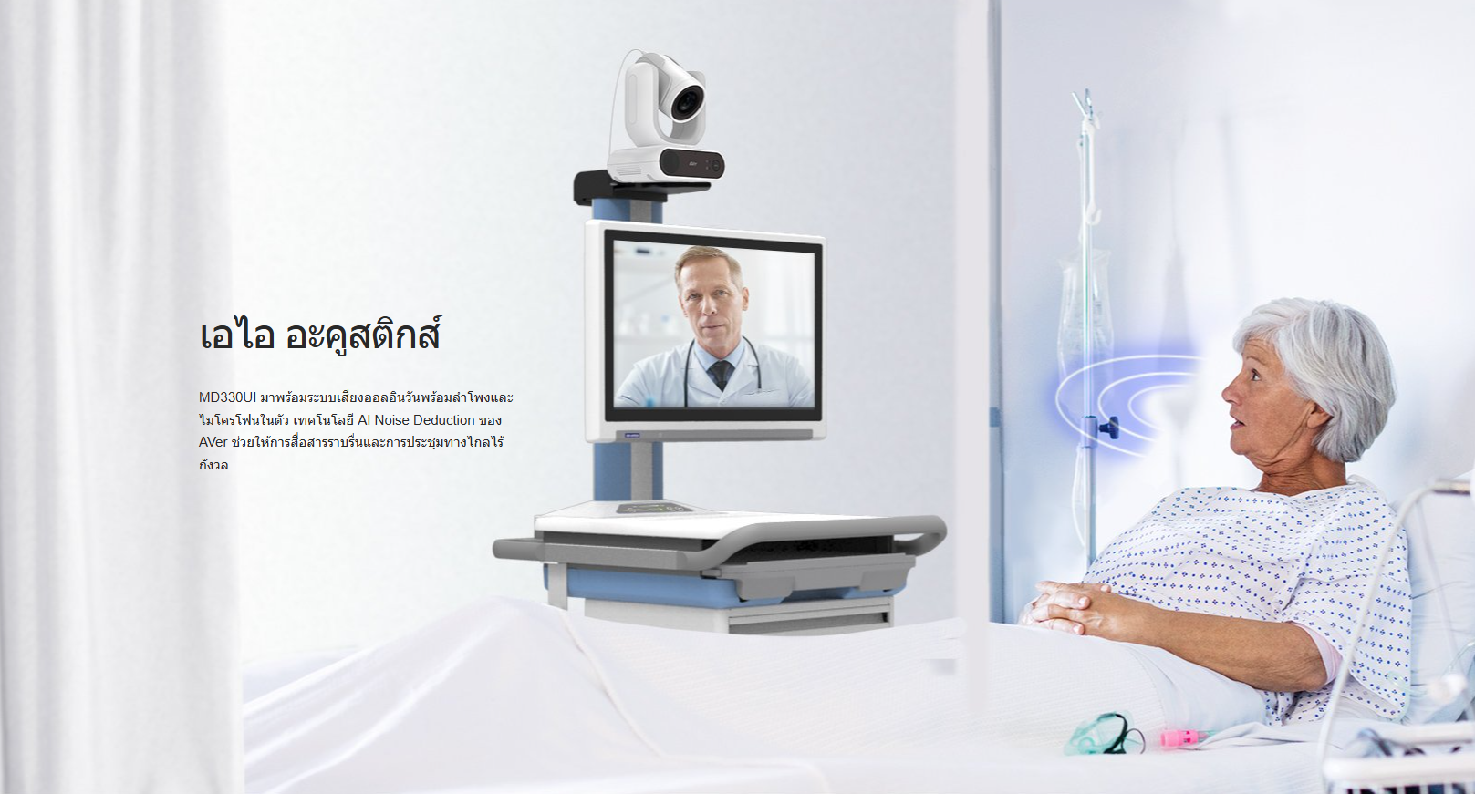 AVer MD330UI ได้รับการออกแบบเป็นพิเศษและได้รับการรับรองทางการแพทย์สำหรับ Telemedicine ด้วยมาตรฐาน IEC 60601-1-2 Medical Certification เลนส์ซูมออปติคอล 30 เท่า พร้อมความละเอียดเอาต์พุต 4K ให้คุณภาพของภาพที่ยอดเยี่ยม ระบบลดเสียงรบกวน AI มอบประสบการณ์การสื่อสารแบบเห็นหน้ากันสำหรับผู้ป่วยและแพทย์ เป็นครั้งแรกในอุตสาหกรรมที่หัวกล้องแบบถอดได้ ช่วยให้สามารถถ่ายภาพระยะใกล้และถ่ายภาพสแนปช็อตได้ 360 องศา MD330UI มาพร้อมระบบอินฟราเรดสำหรับการมองเห็นในเวลากลางคืน มอบการดูแลตลอด 24 ชั่วโมงทุกวัน