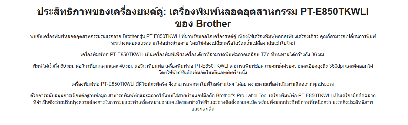 Brother (เครื่องพิมพ์ปลอกสายไฟและฉลาก) P-Touch PT-E850TKWLI