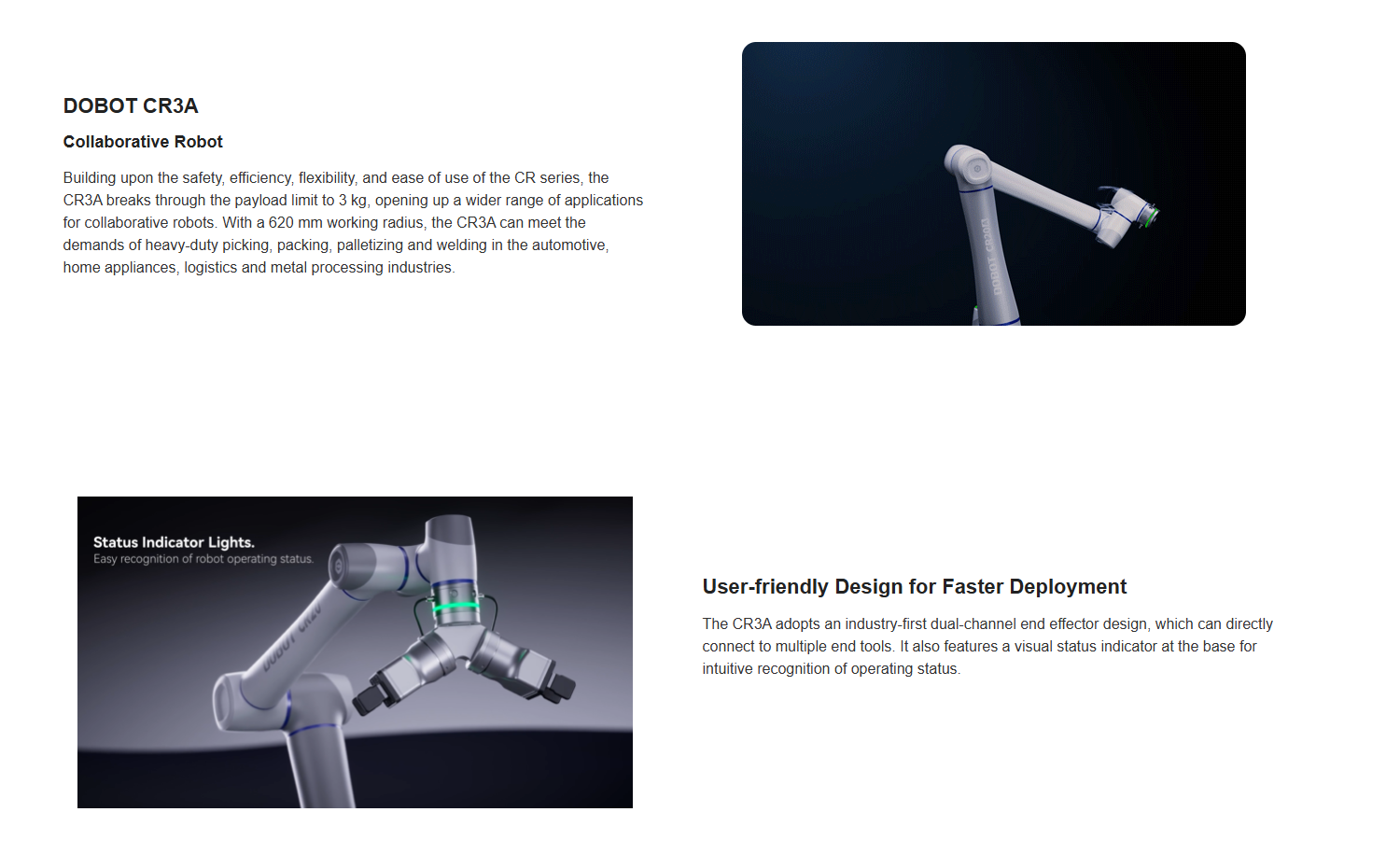 DOBOT (CR3A) Collaborative Robot Series - Safe, flexible and self-learning