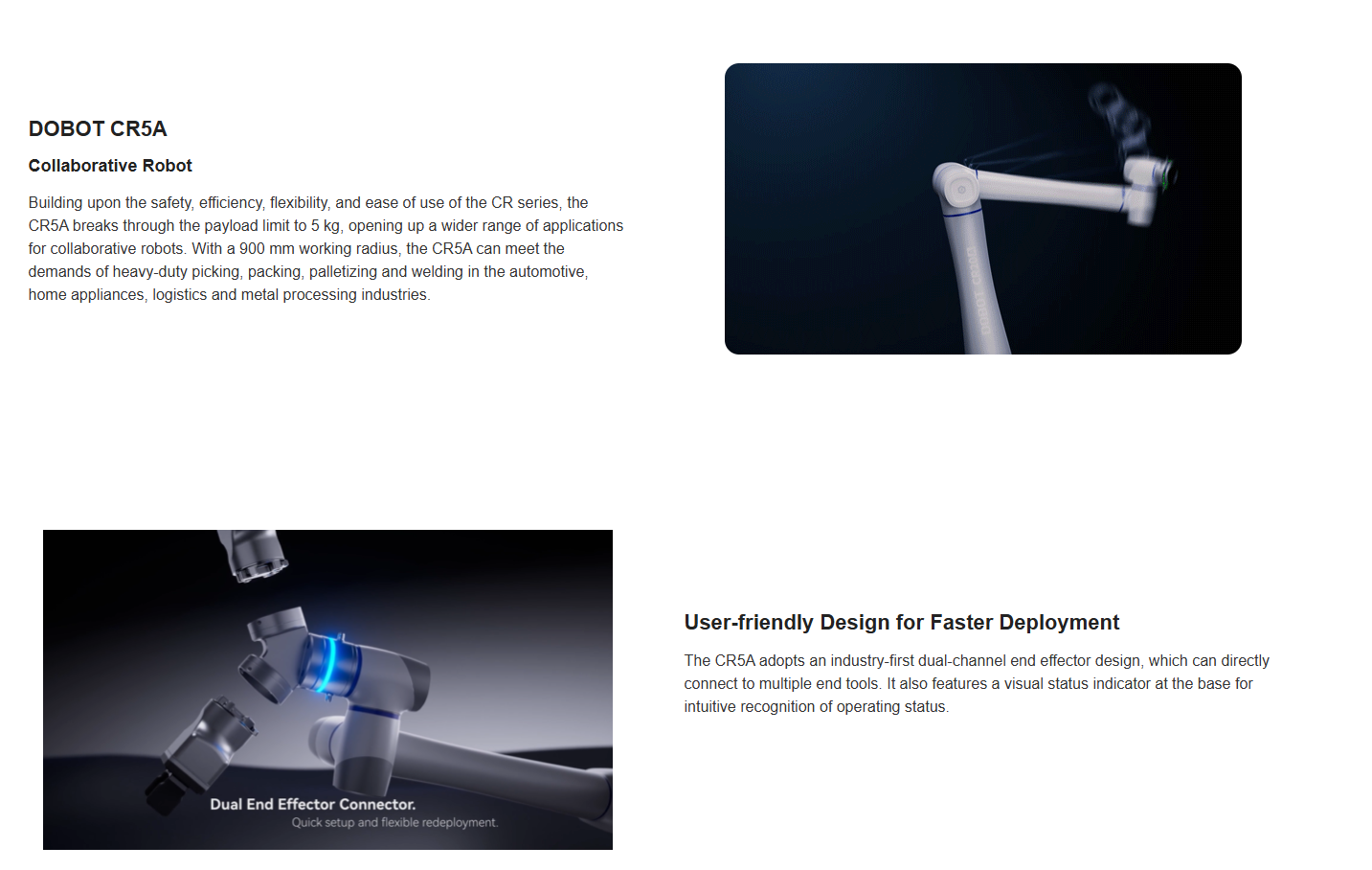 DOBOT (CR5A) CRA Collaborative Robot Series - Safe, flexible and self-learning