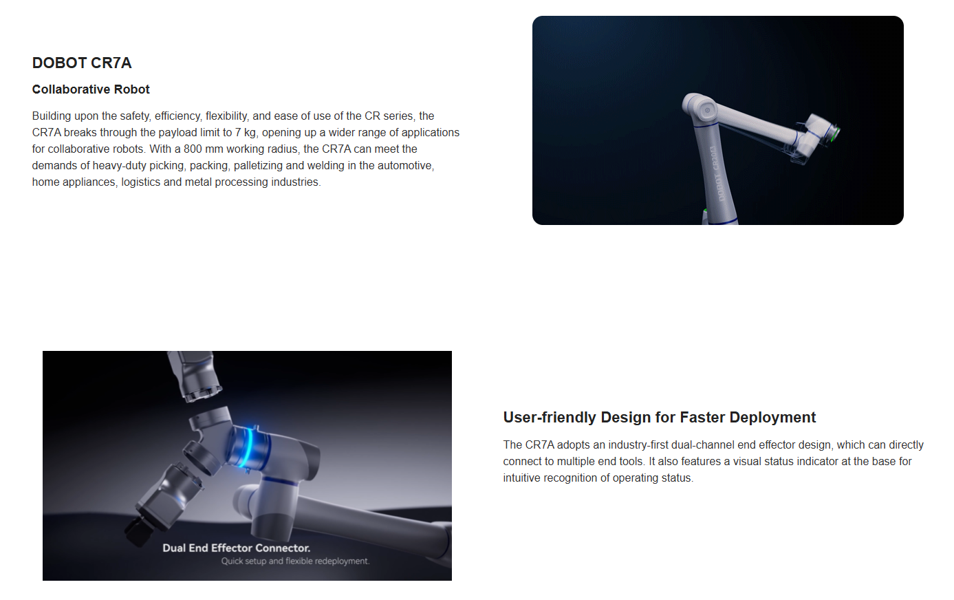 DOBOT (CR7A) CRA Collaborative Robot Series - Safe, flexible and self-learning