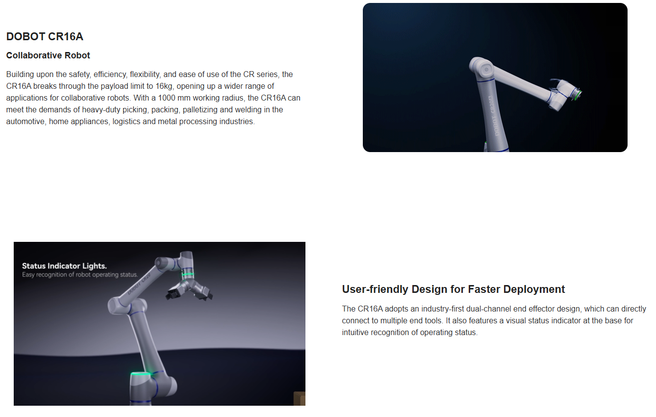 DOBOT (CR16A) CRA Collaborative Robot Series - Safe, flexible and self-learning