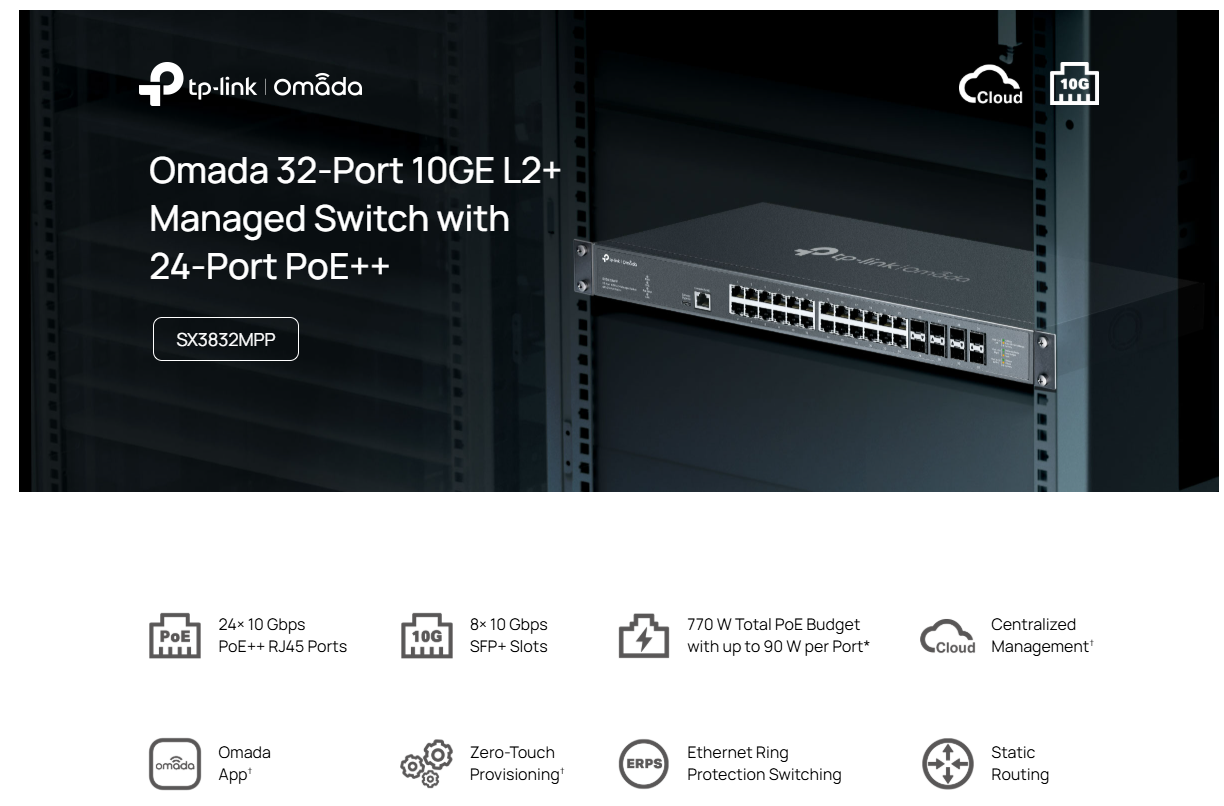 TP-Link (SX3832MPP) Omada 32-Port 10GE L2+ Managed Switch with 24-Port PoE++