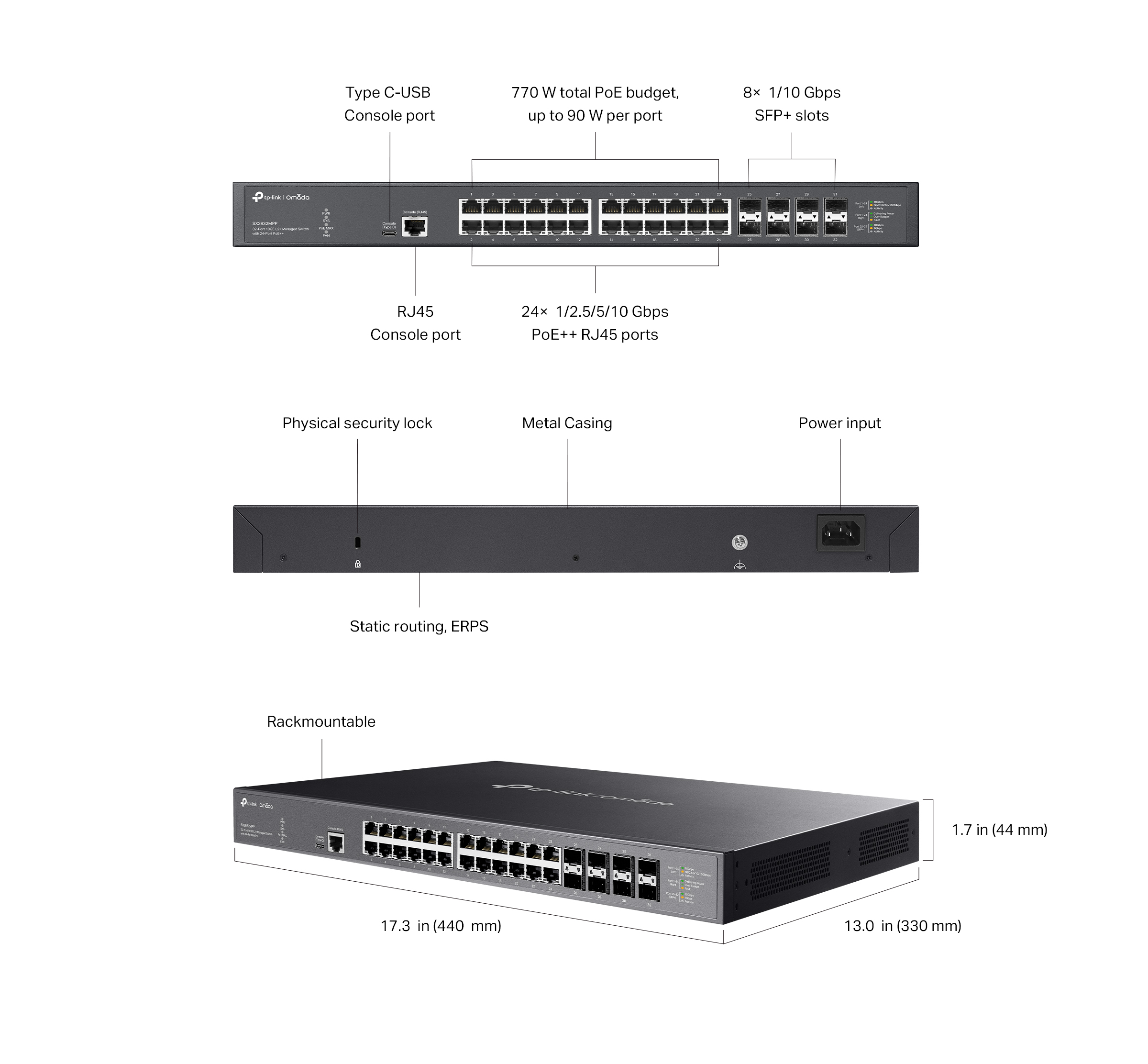 24× 100Mbps/1Gbps/2.5Gbps/5Gbps/10Gbps PoE++ RJ45 Ports (Auto-Negotiation/Auto MDI/MDIX)