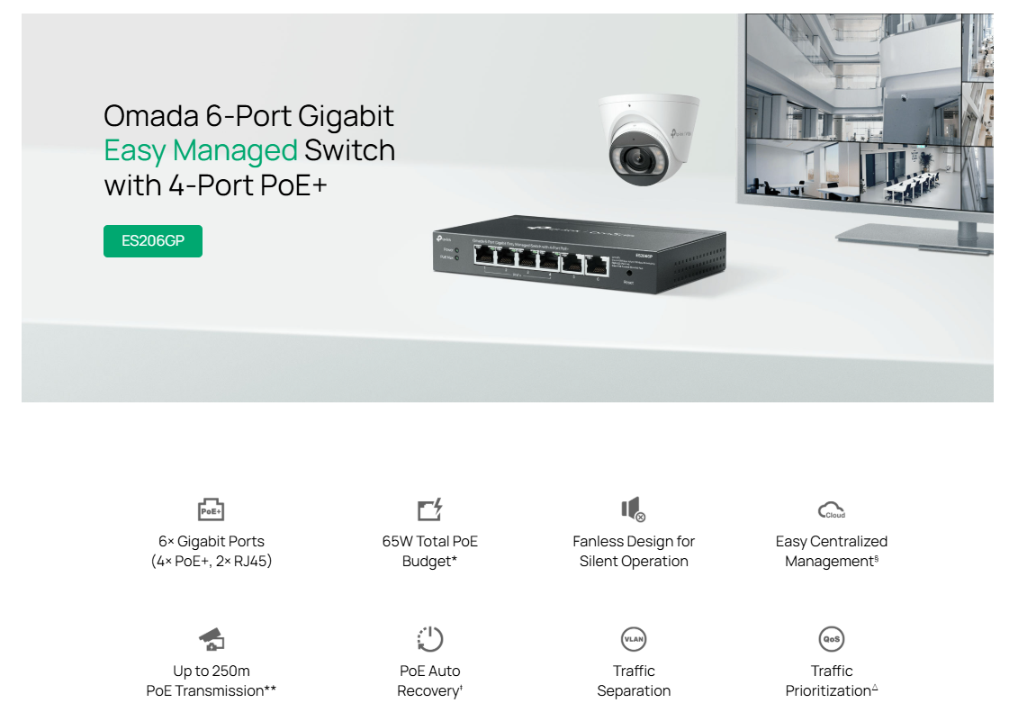 TP-Link (ES206GP) Omada 6-Port Gigabit Easy Managed Switch with 4-Port PoE+
